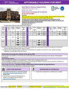 Cómo presentar solicitud: Fecha y lugar de la lotería: 7 de Mayo de 2025 1:00PM https://www.facebook.com/goodcarbonco La lotería determinará cuáles aplicaciones se analizarán para el alquiler.
