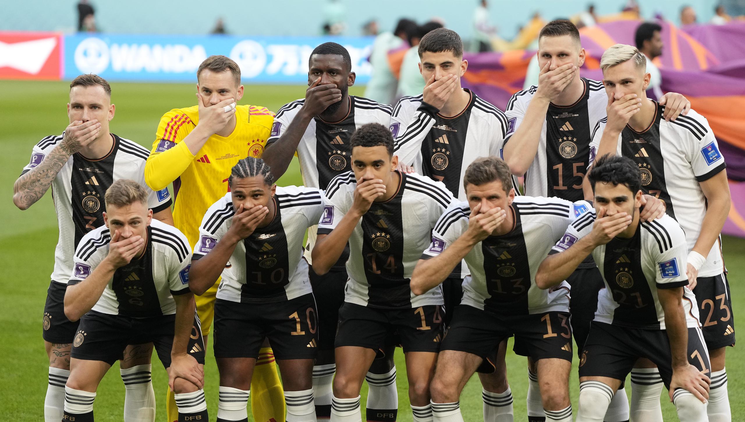 Parecía una respuesta a la advertencia de la FIFA a las siete federaciones europeas, entre las que estaba la alemana, de que los jugadores serían sancionados si empleaban el colorido brazalete de la campaña “One Love” como símbolo de inclusión y diversidad. Los siete capitanes tenían previsto llevarlo.