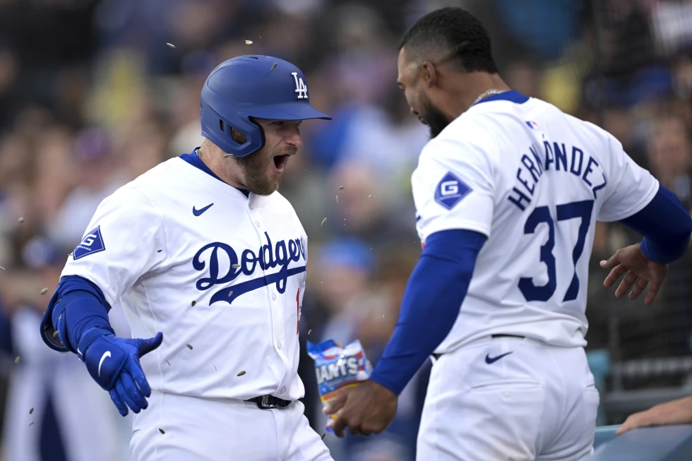 Los Ángeles perdía 4-2 en la baja de la octava entrada antes de la remontada. Hernández acercó a los Dodgers a una carrera a través de su tercer cuadrangular de la temporada, un solitario tablazo hacia la pradera izquierda ante Andre Pallante.
