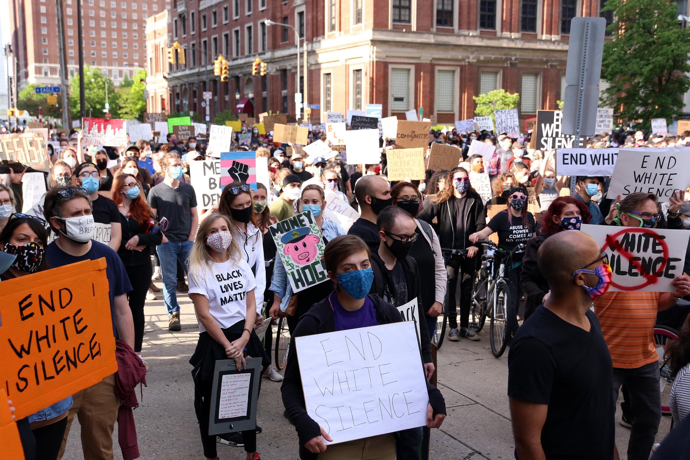 Buffalo, NY. – A day after a mental health call led to the shooting of a man at Genesee and Ash Streets in Buffalo, dozens of protesters took their calls for justice through the streets. The main message from protesters Sunday night: “defund the police and refund the community.”
